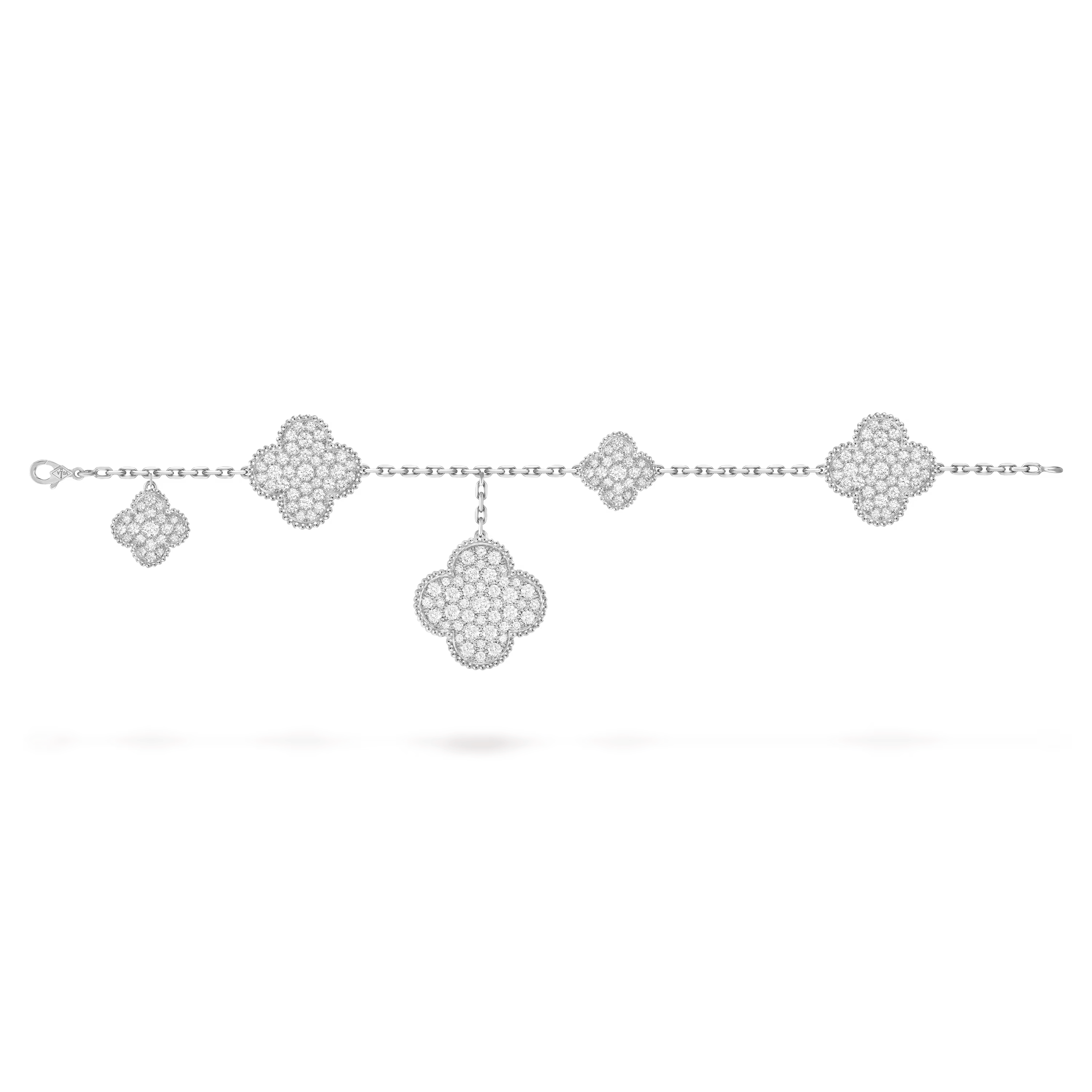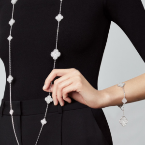 From the smooth, rounded edges to the mirror-like polish, the bracelet reflects the Maison’s mastery of fine jewelry craftsmanship. Each motif is meticulously shaped and set to celebrate both artistry and precious materials.
