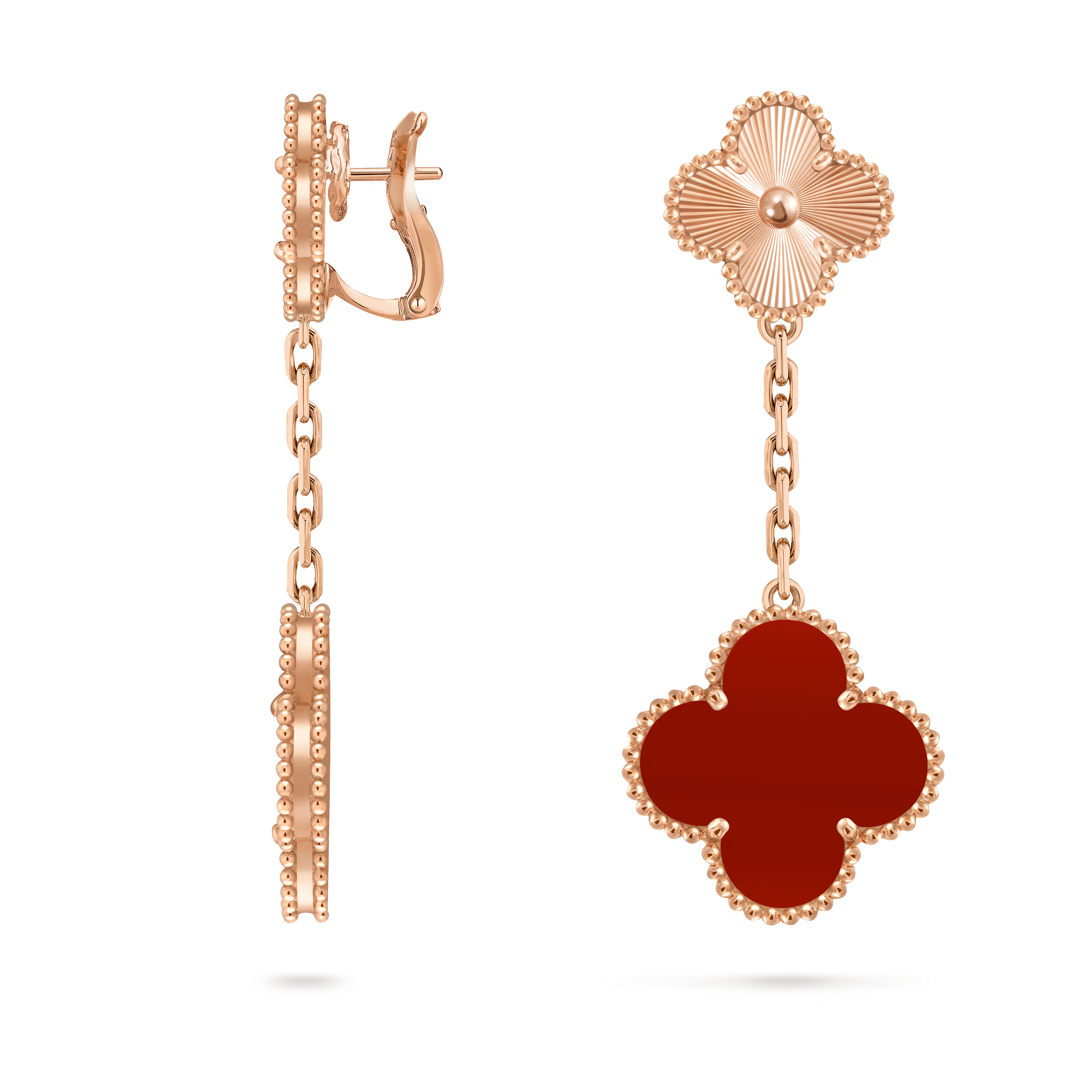 Magic Alhambra Earrings, 2 Motifs – 18K Rose Gold & Carnelian**