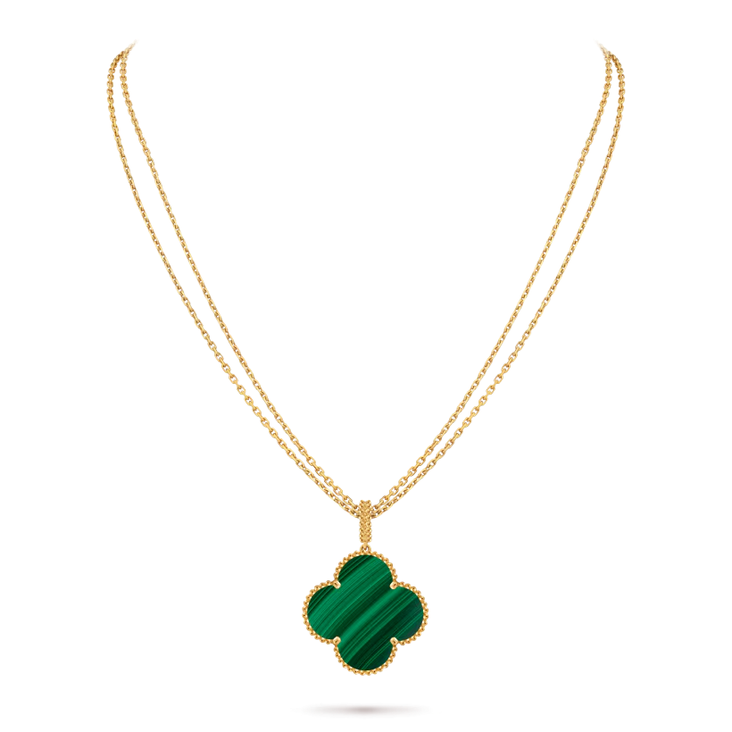 The Magic Alhambra long necklace features a single oversized clover motif inspired by luck, harmony, and timeless elegance. Highlighting Van Cleef & Arpels’ signature design, this piece blends refined simplicity with bold presence, making it both modern and iconic.