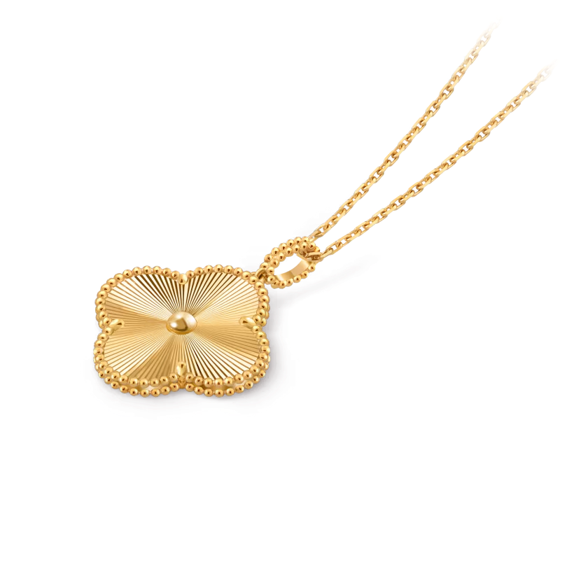 The Magic Alhambra long necklace highlights a single, oversized clover motif that symbolizes luck, harmony, and timeless beauty. With its elegant proportions and refined detailing, this piece reflects Van Cleef & Arpels’ poetic craftsmanship and iconic design language.