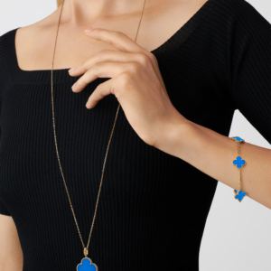 The long, fluid chain enhances its versatility, allowing it to be worn alone as a statement piece or layered with other Alhambra creations for a more expressive look. Artful and serene, this necklace embodies the Maison’s enduring belief in the beauty of luck and the artistry of fine craftsmanship.