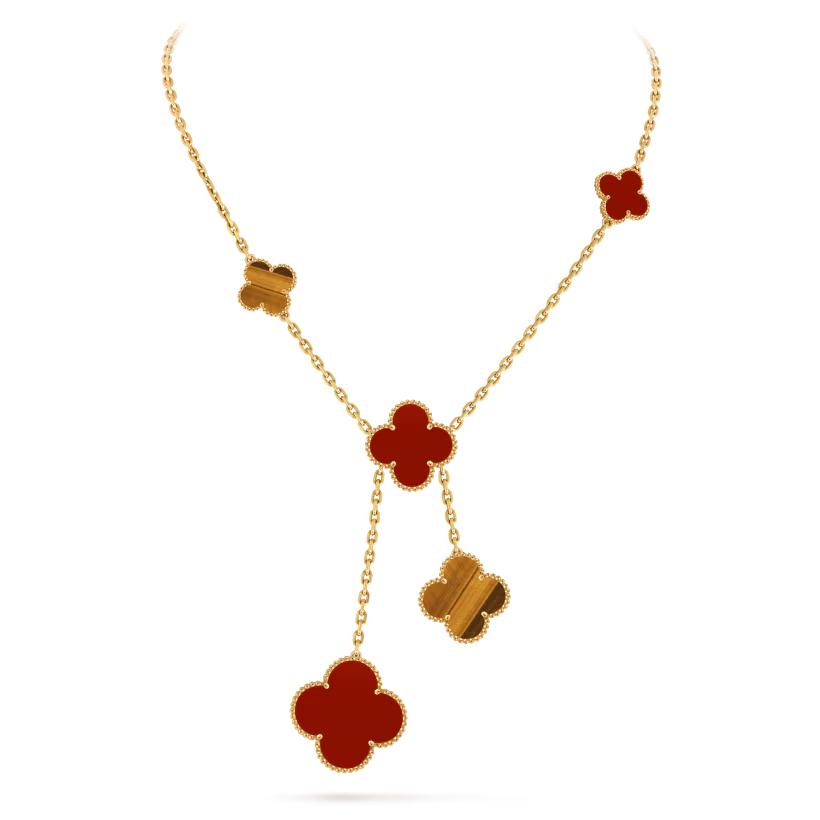 The Magic Alhambra necklace with 6 motifs combines iconic design and expert craftsmanship, making it a timeless addition to any jewelry collection.