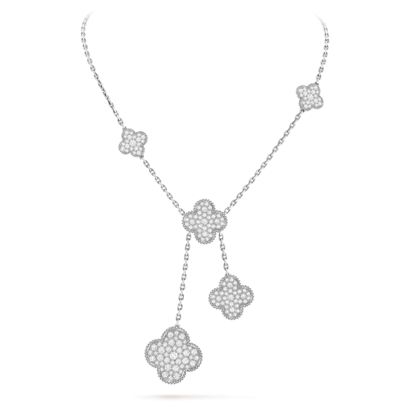 The Magic Alhambra necklace with 6 motifs is a harmonious blend of iconic design and luxurious craftsmanship. Its symbolic motifs and refined details make it a meaningful and timeless addition to any jewelry collection.