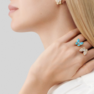 The Maison’s iconic Between the Finger design creates an illusion of movement across the hand, as though the butterflies are caught in a graceful moment of flight. Feminine, poetic, and full of vitality, this ring embodies the artistry and elegance that define Van Cleef & Arpels.