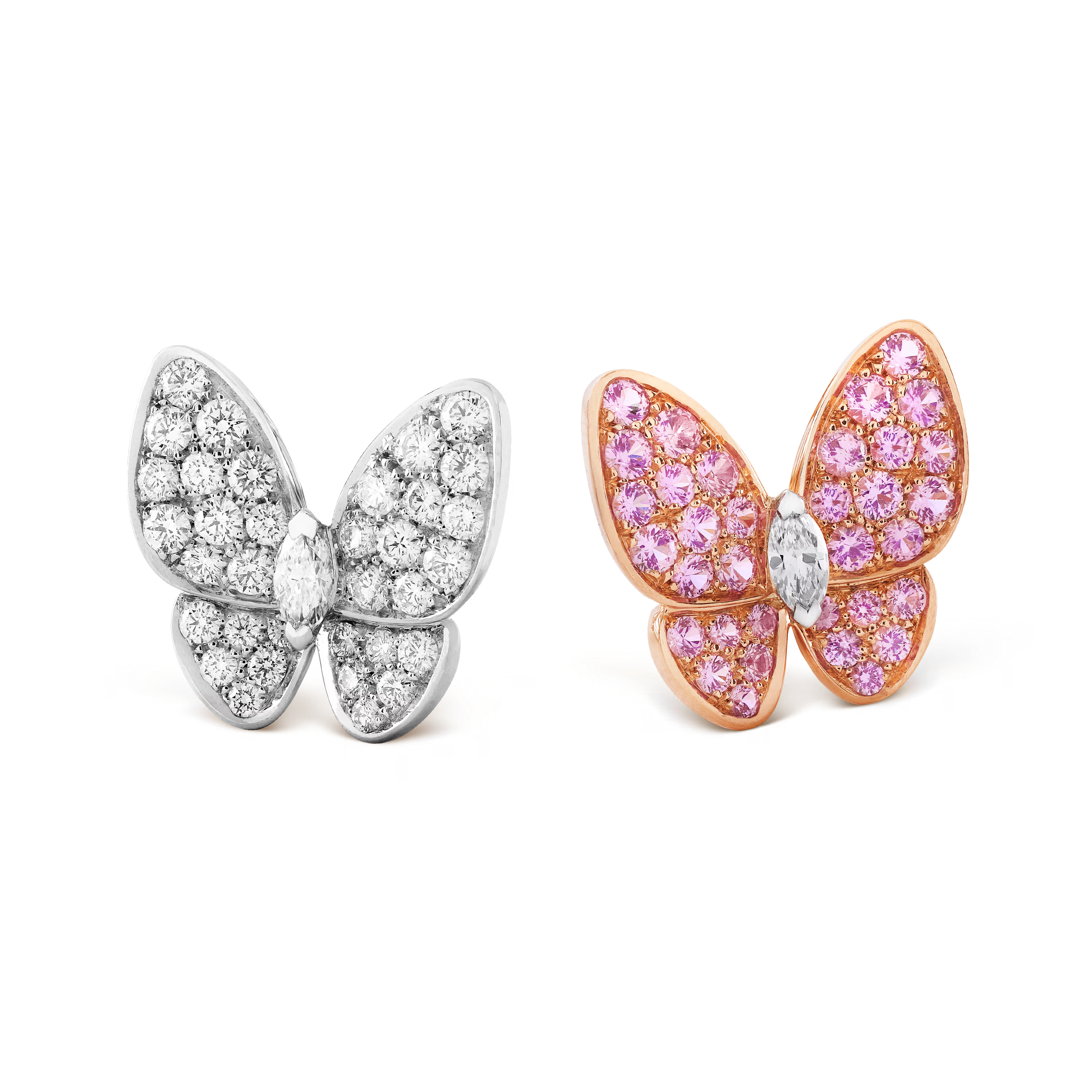 Delicate, elegant, and full of poetic charm, the Two Butterfly Earrings capture the grace and freedom of butterflies in flight—one of Van Cleef & Arpels’ most beloved motifs. These earrings symbolize transformation, lightness, and the beauty of nature, rendered in exquisite craftsmanship.