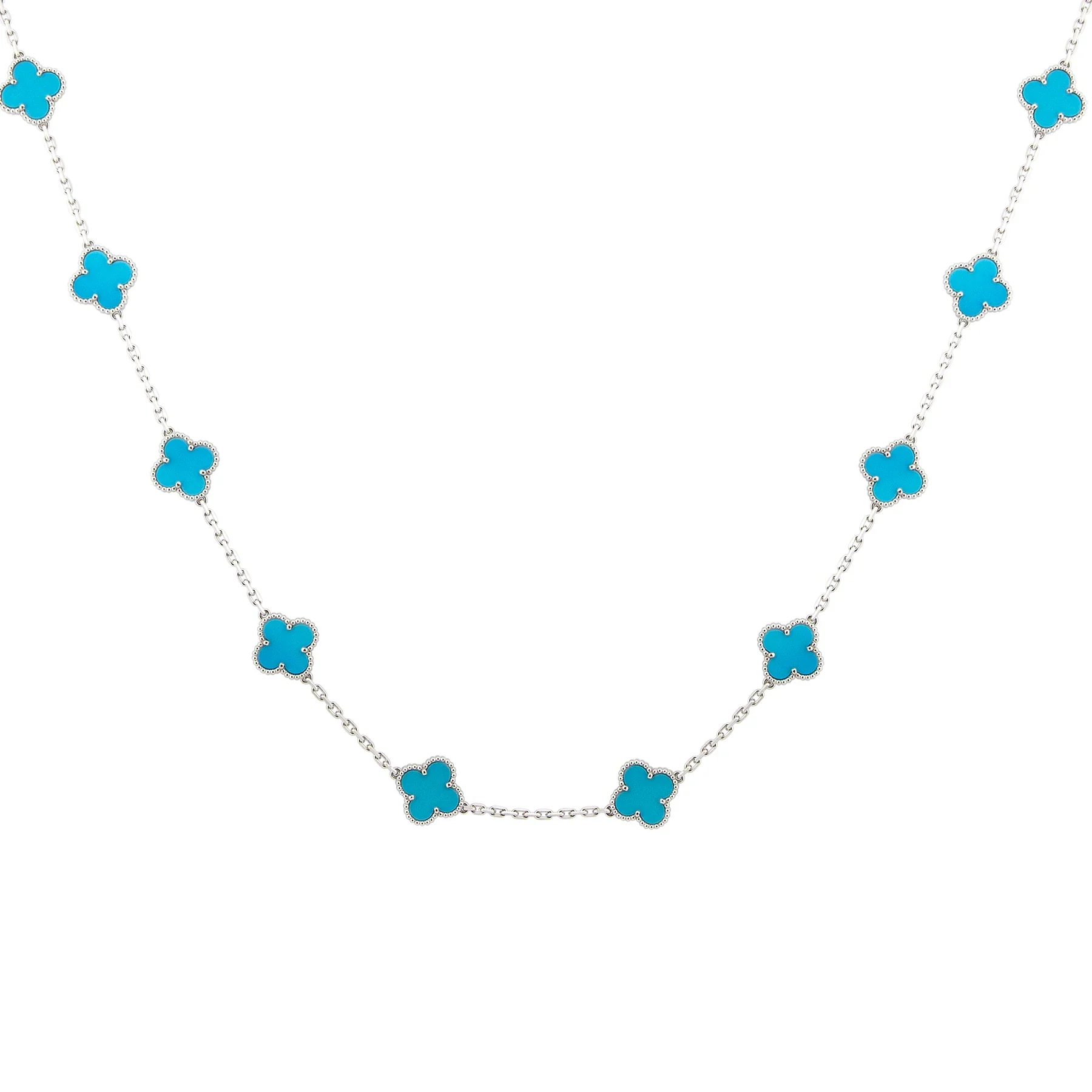 Van Cleef & Arpels 18K White Gold Vintage Turquoise Alhambra Lady’s Necklace