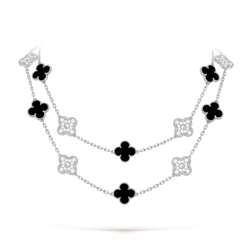 Wear it as a long strand for an elongated effect or double it for a layered look. Pairs beautifully with matching Alhambra earrings or bracelets.