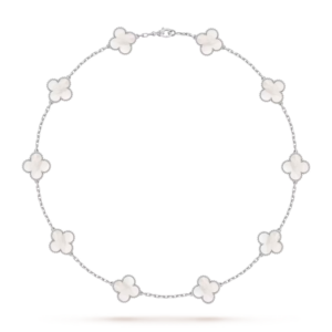 The Vintage Alhambra necklace with 10 motifs is a timeless expression of elegance and artistry. Its symbolic design and refined craftsmanship make it a meaningful and sophisticated addition to any jewelry collection.