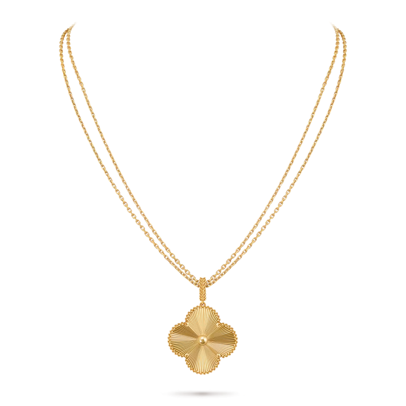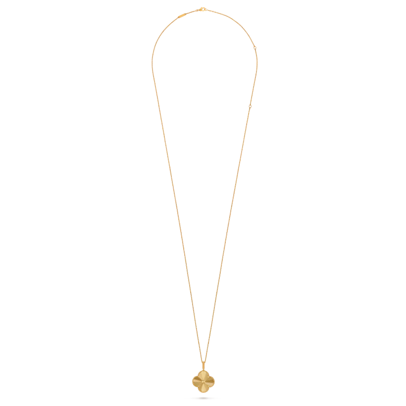 The Magic Alhambra long necklace highlights a single, oversized clover motif that symbolizes luck, harmony, and timeless beauty. With its elegant proportions and refined detailing, this piece reflects Van Cleef & Arpels’ poetic craftsmanship and iconic design language.
