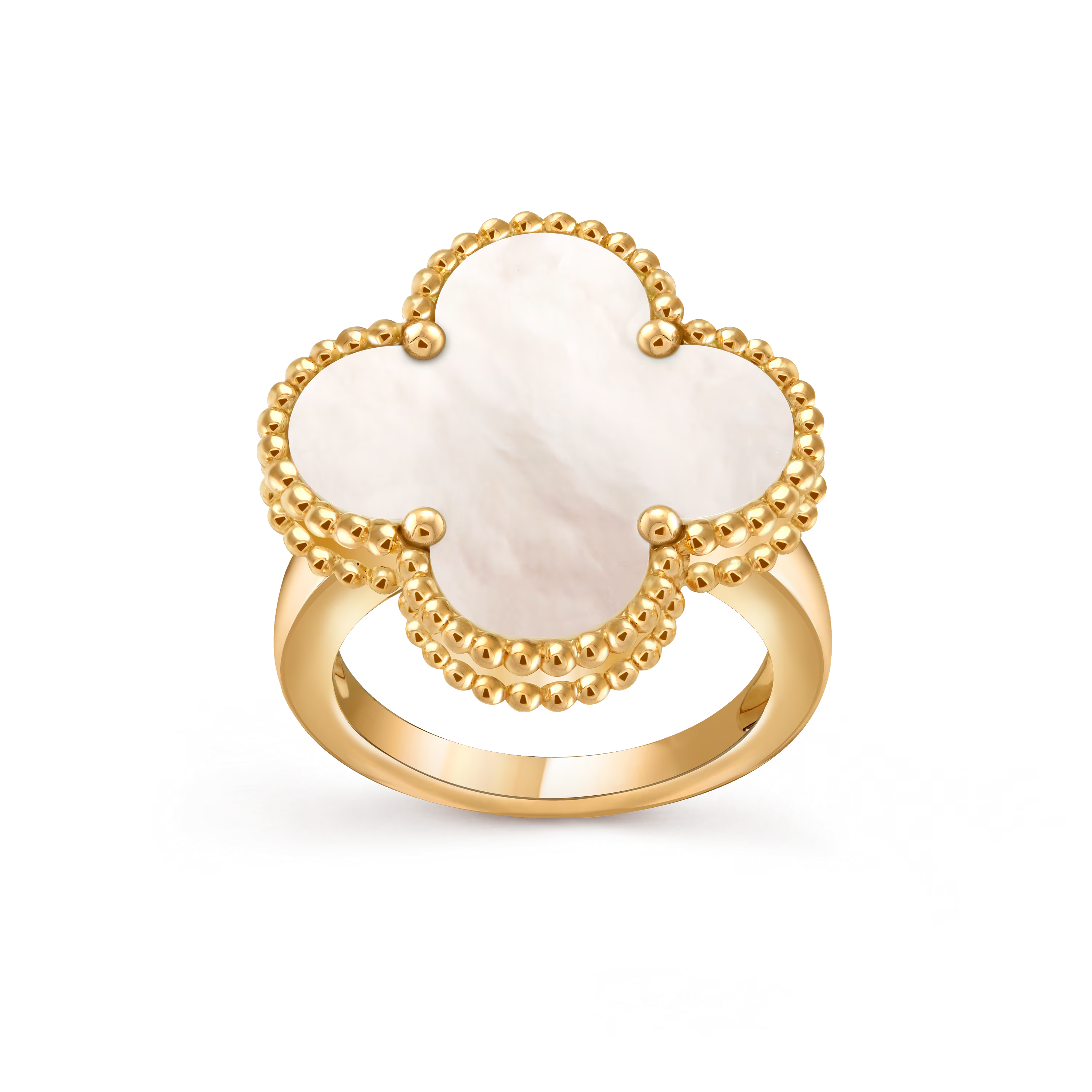 Expressive yet refined, the Magic Alhambra ring offers a contemporary play of scale while remaining unmistakably true to the spirit of the Alhambra Collection. Perfect for daily elegance or meaningful gifting, it pairs beautifully with other Magic or Vintage Alhambra pieces for a harmonious, layered look.