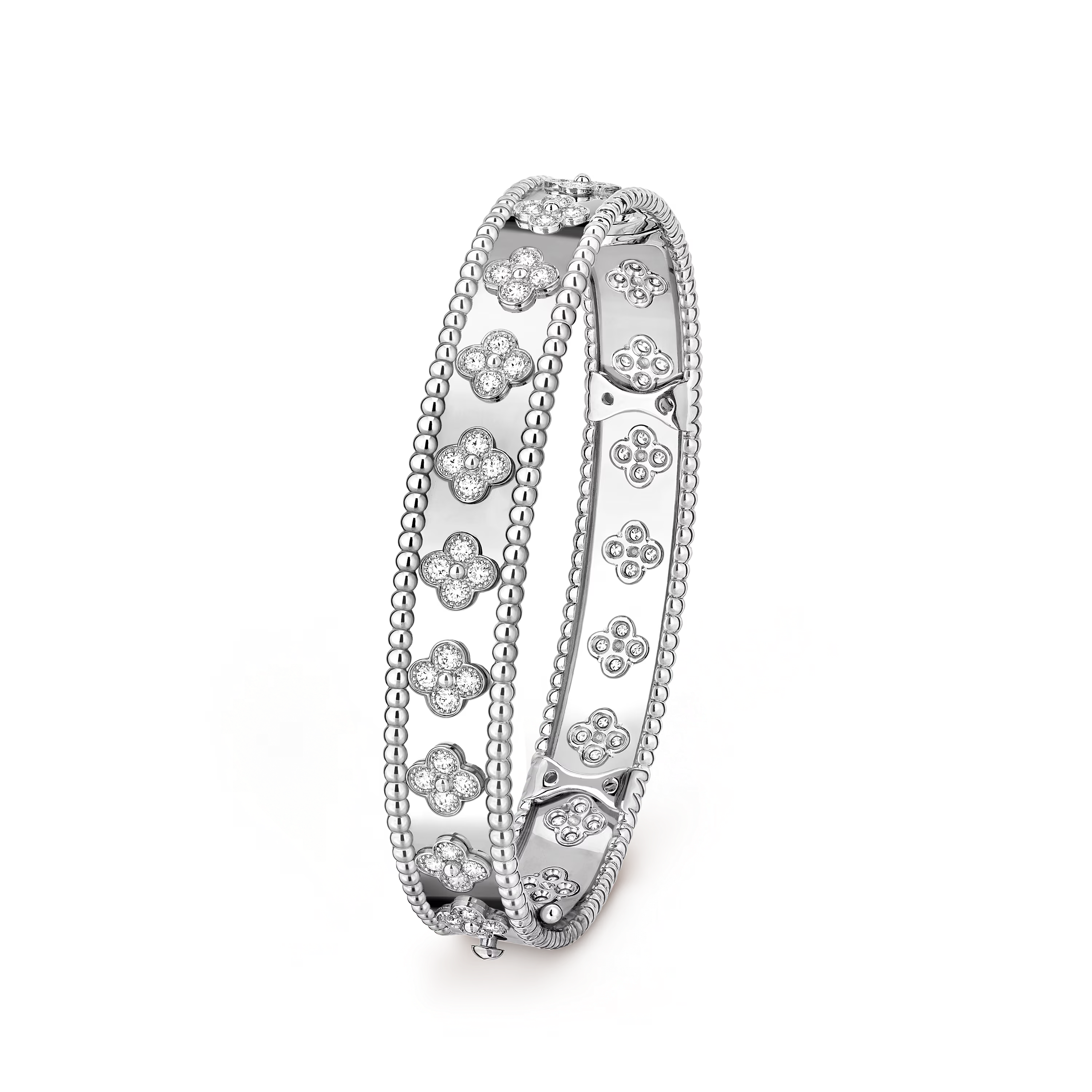 Radiant and expressive, the Perlée clovers bracelet embodies a joyful interpretation of luck and elegance, celebrating movement, light, and enduring beauty in a contemporary form.