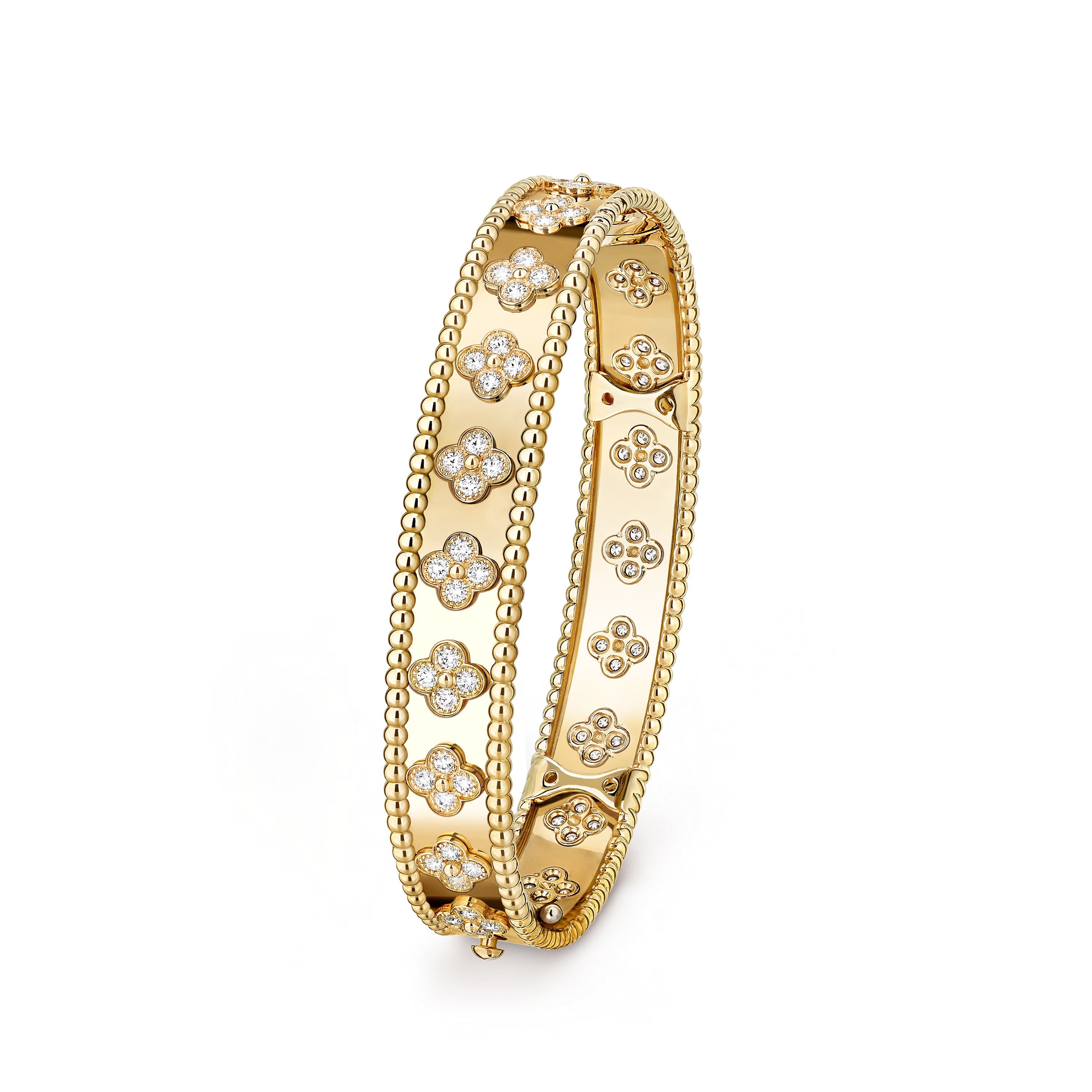 The clover—an enduring emblem of the Maison—brings with it a touch of luck and poetic charm. Interpreted through the Perlée aesthetic, it becomes a luminous expression of positivity, grace, and timeless refinement.