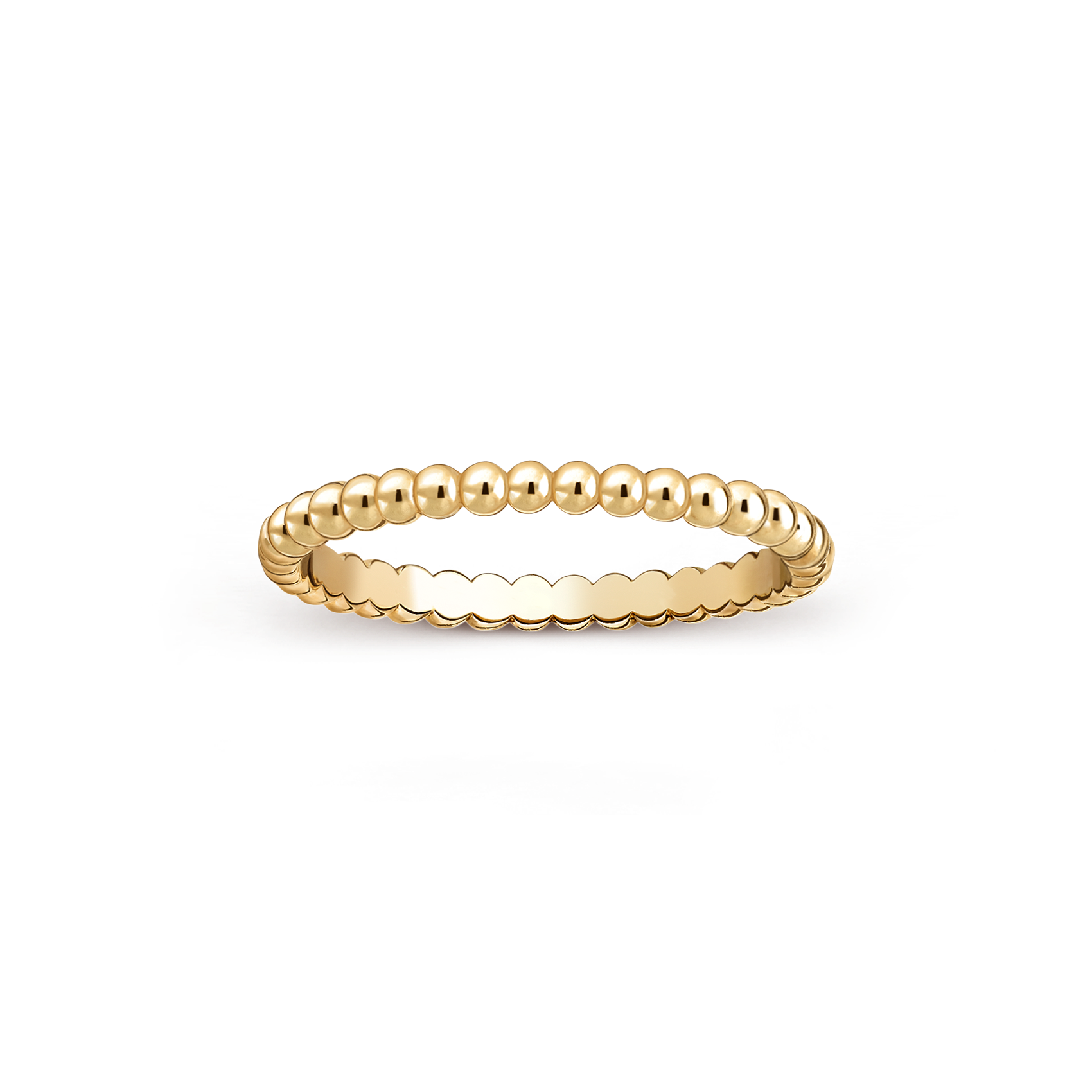 The delicate proportions of the small model make this ring perfect for daily wear, while the radiant golden pearls—formed by meticulously hand-engraved gold beads—create a rich, textured effect that catches the light with every movement. Whether worn alone for a subtle yet refined statement or stacked with other Perlée designs for a layered, luminous look, it brings sophistication and charm to any ensemble.