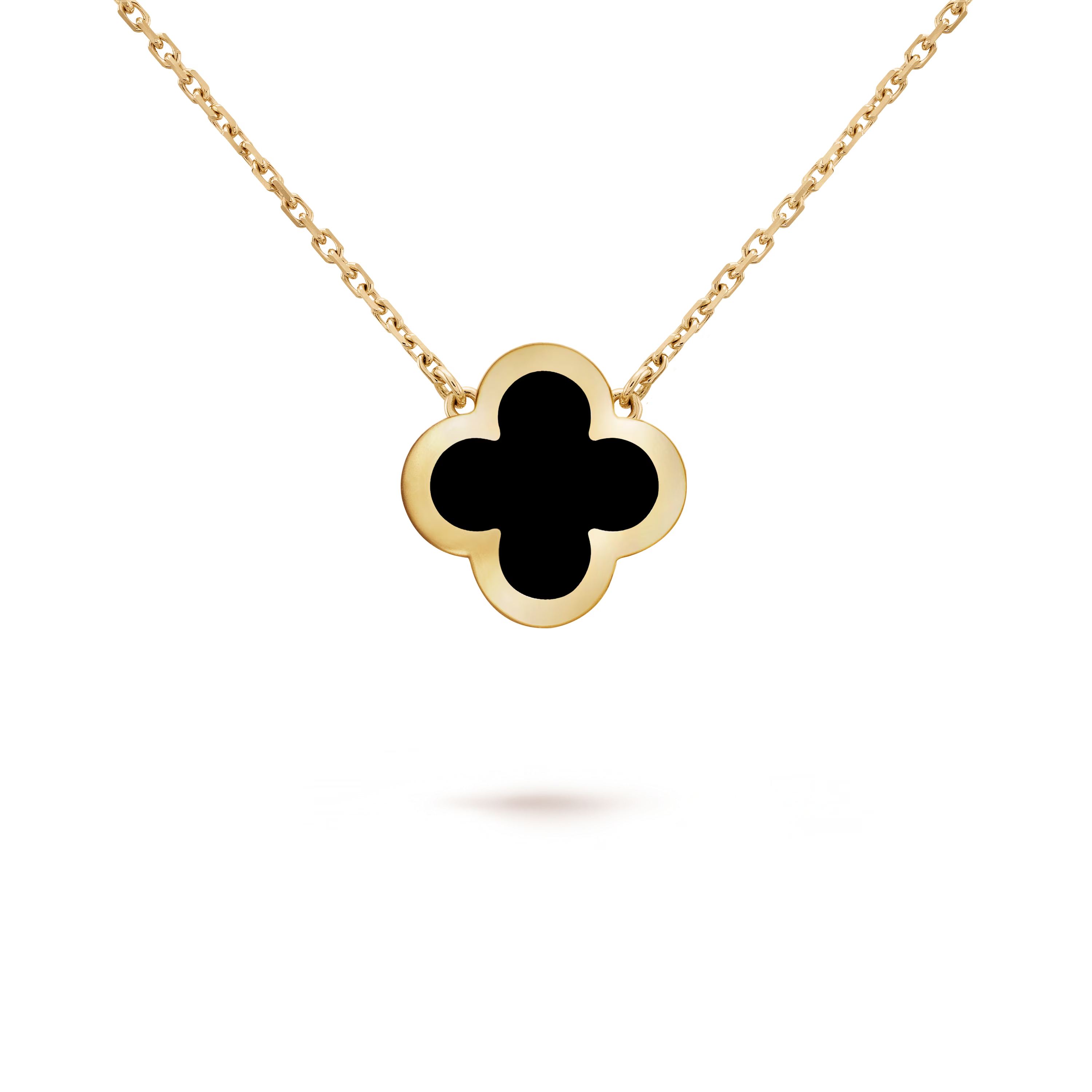 Striking, elegant, and timelessly modern, the Pure Alhambra Pendant unites Van Cleef & Arpels’ iconic clover design with the deep, polished beauty of onyx. Crafted in radiant 18K yellow gold, this pendant reflects harmony, strength, and the Maison’s refined approach to understated luxury.