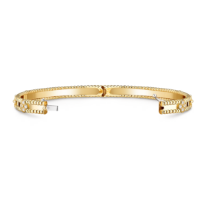 Each four-leaf clover motif is framed by the collection’s iconic beaded edge. This distinctive detail adds depth, texture, and a sculptural dimension, enhancing the bracelet’s instantly recognizable character.